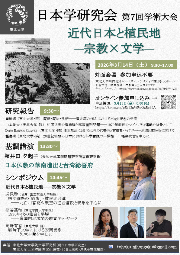 | 主催 | 東北大学文学研究科現代日本学専攻分野、東北大学国際文化研究科日本宗教・思想史研究講座 |