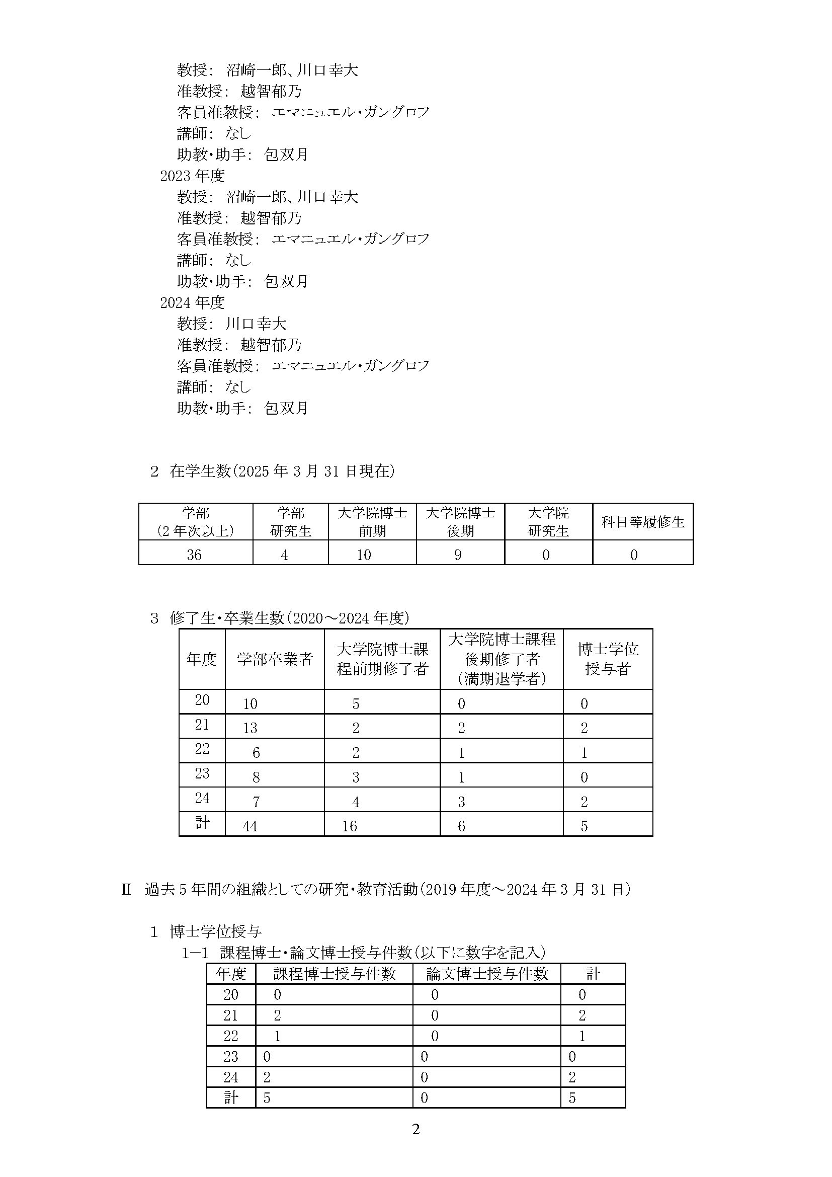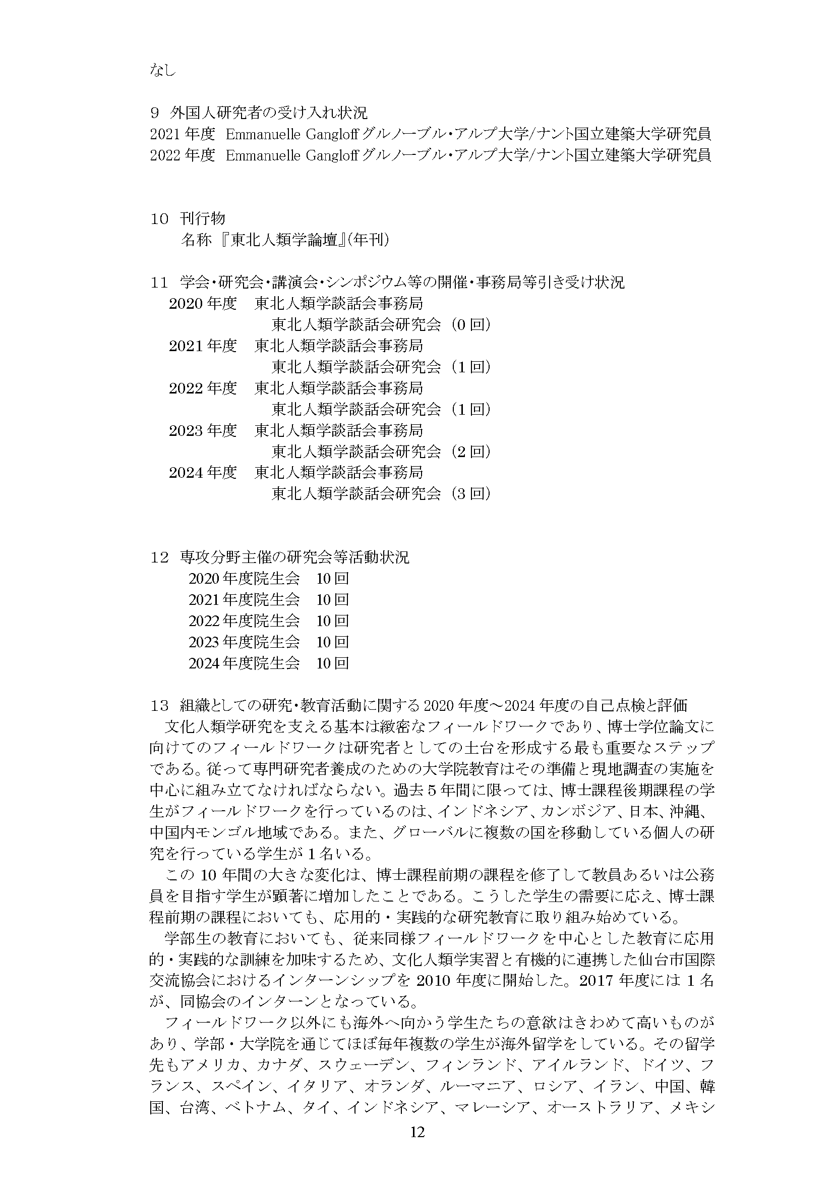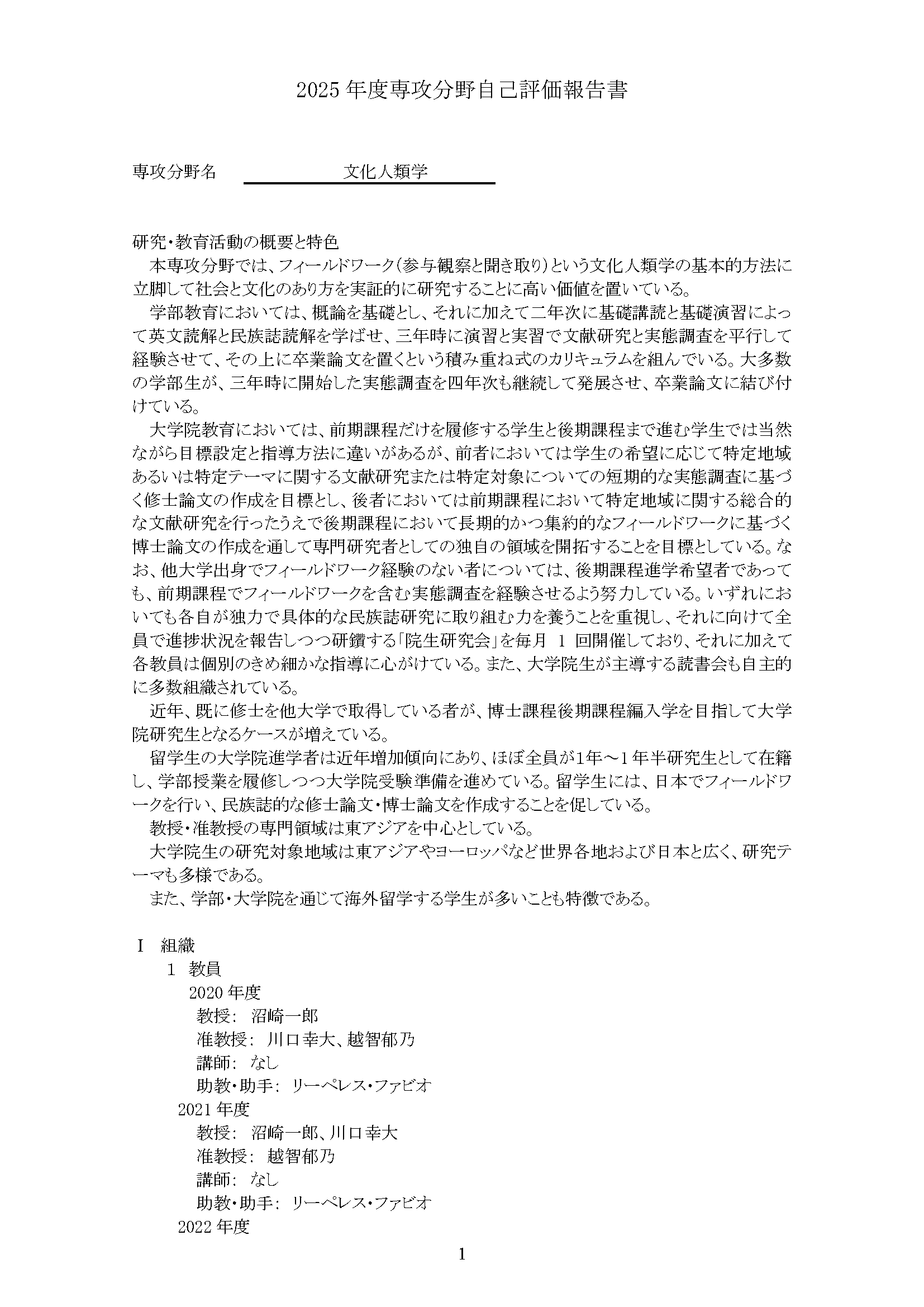専攻分野自己評価報告