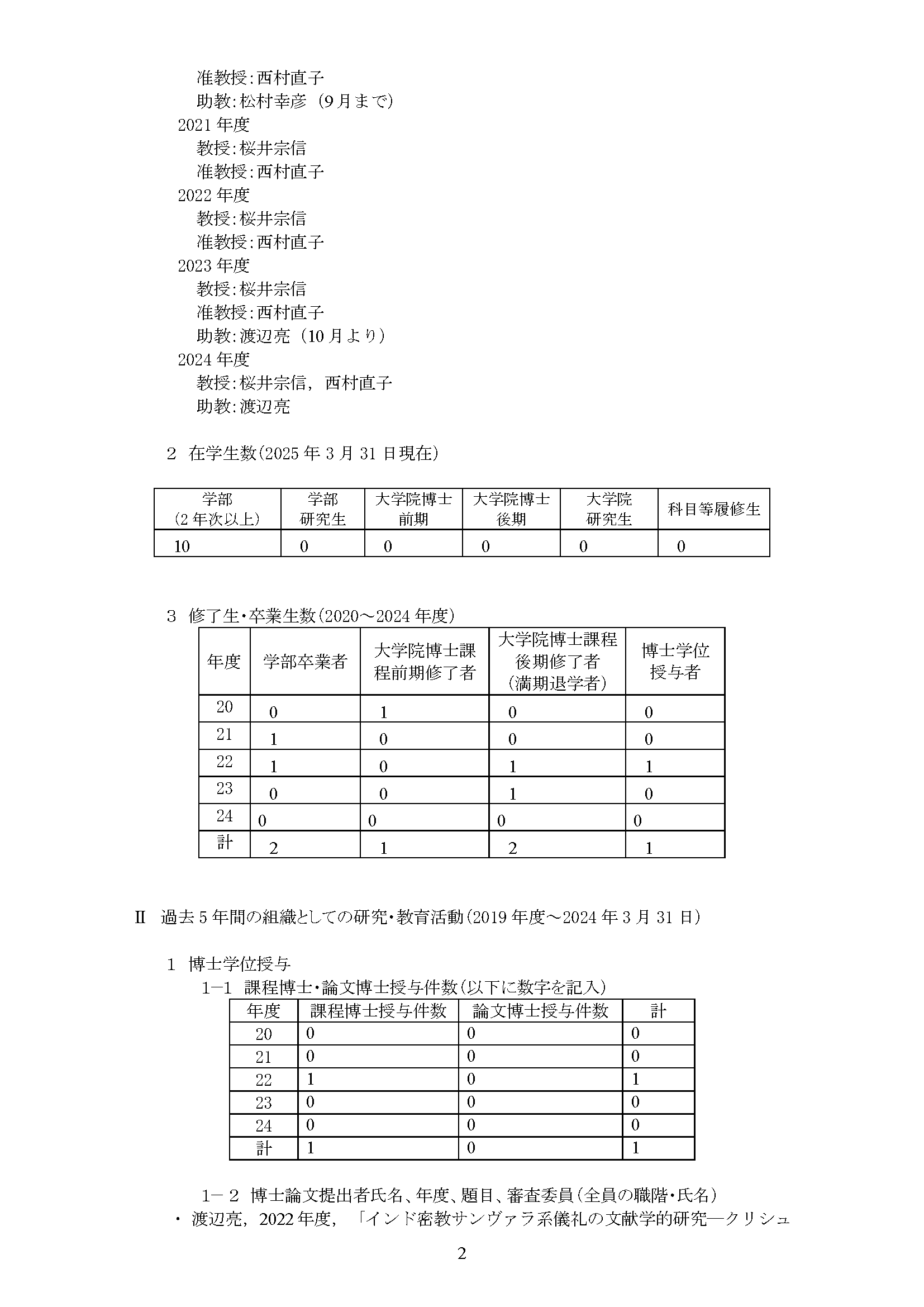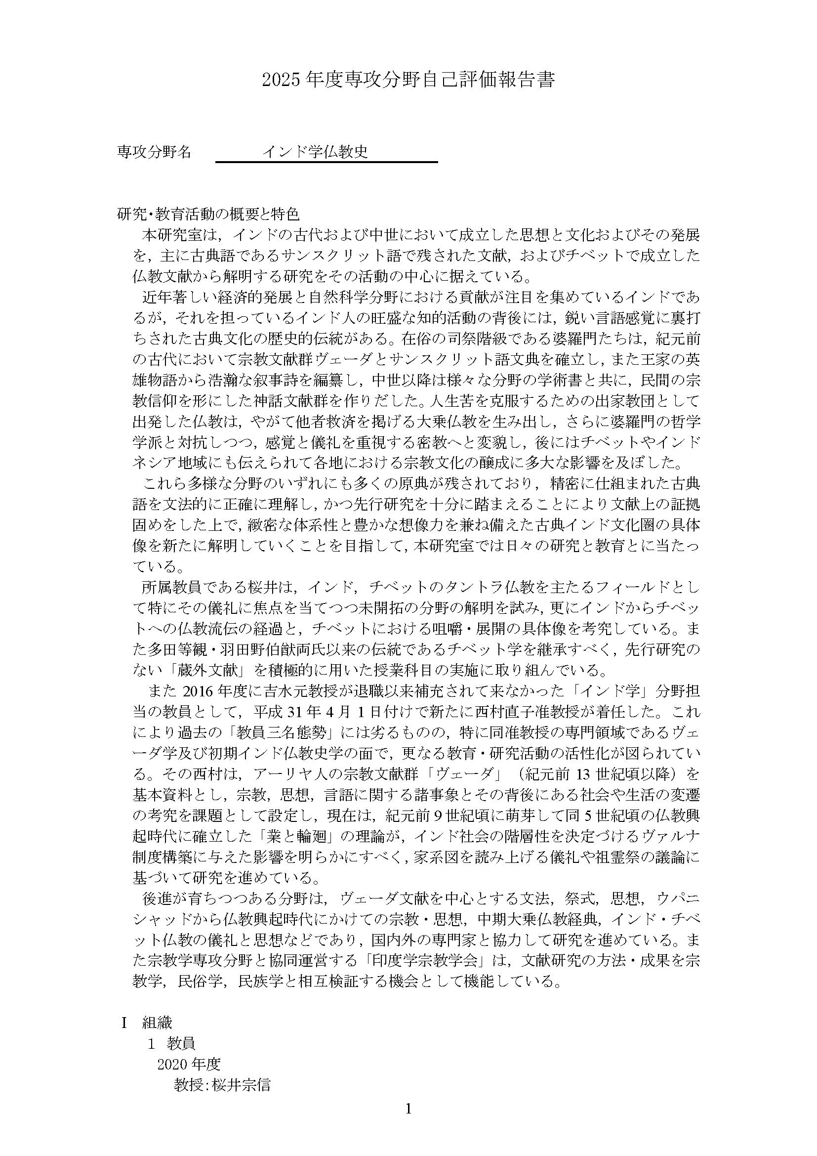 専攻分野自己評価報告