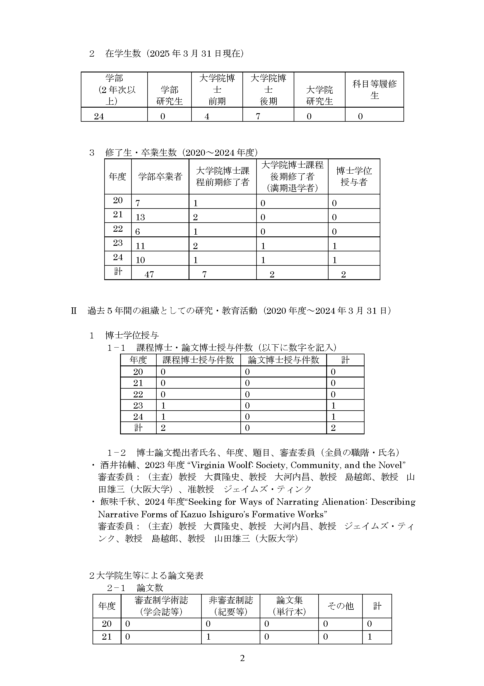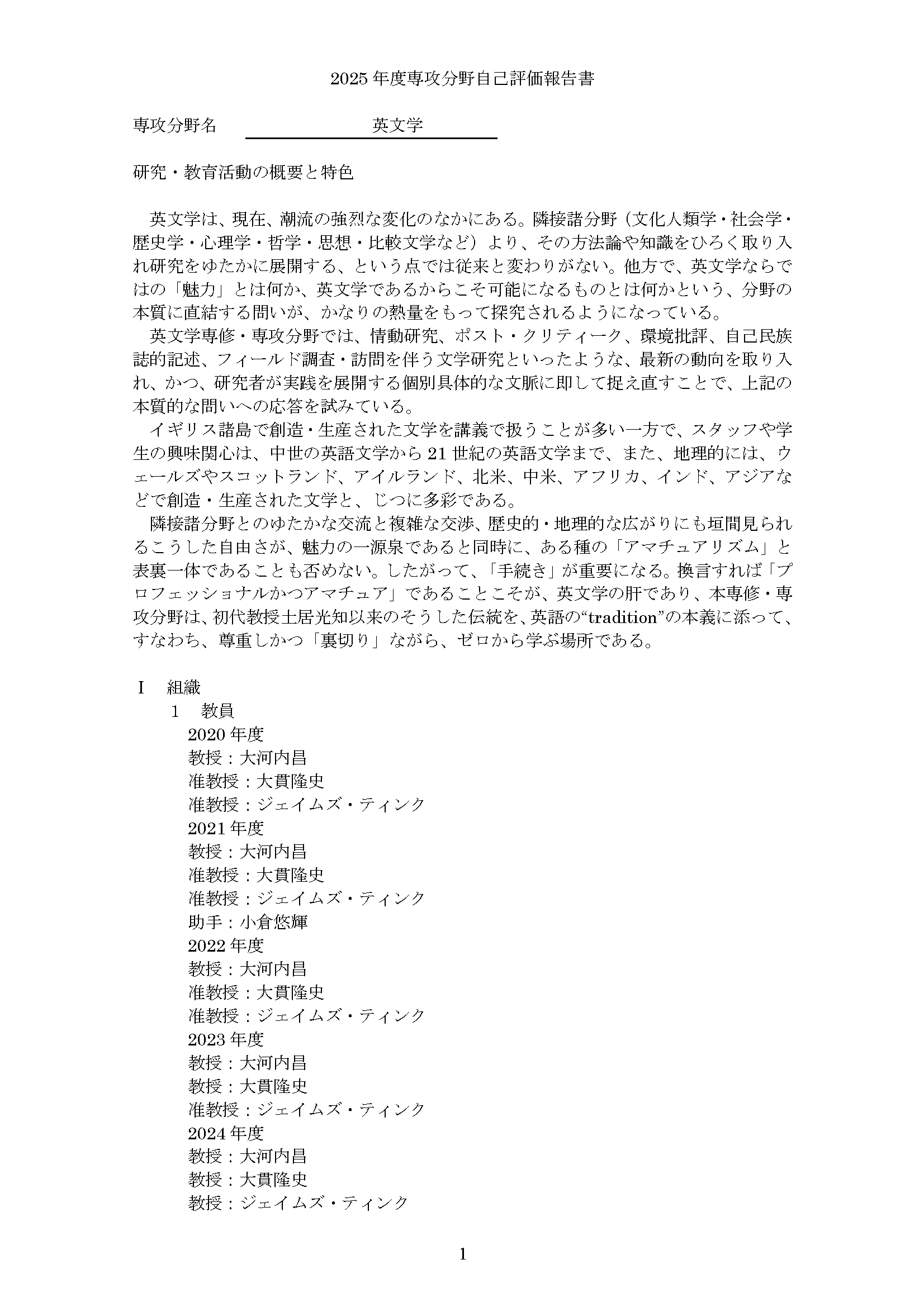 専攻分野自己評価報告