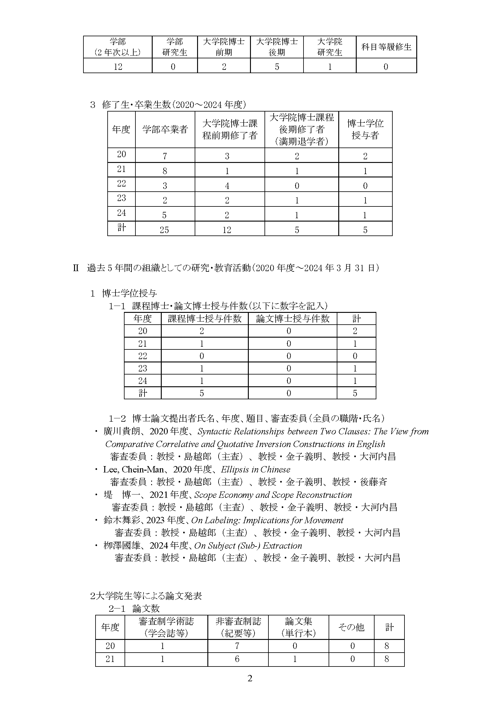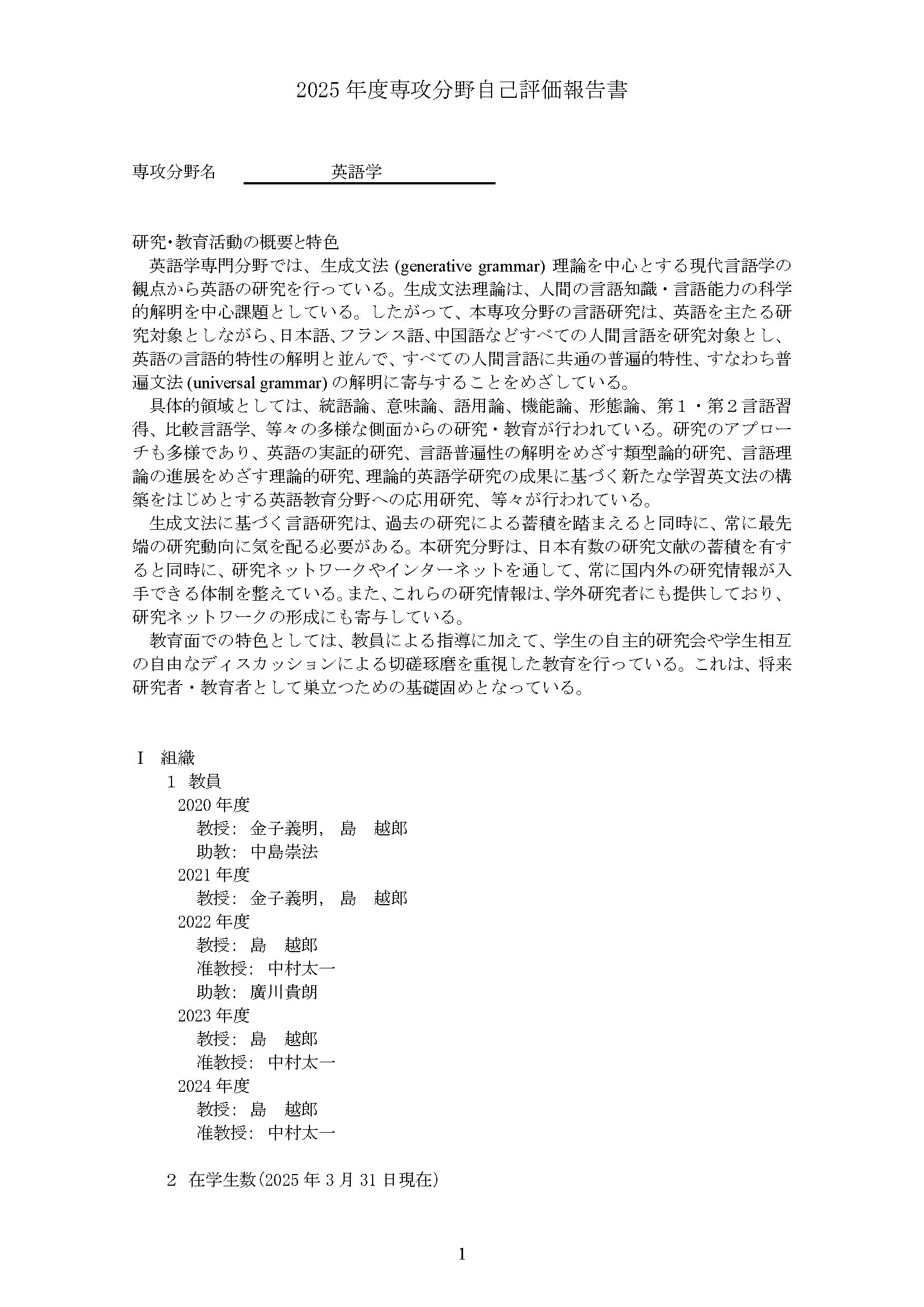専攻分野自己評価報告