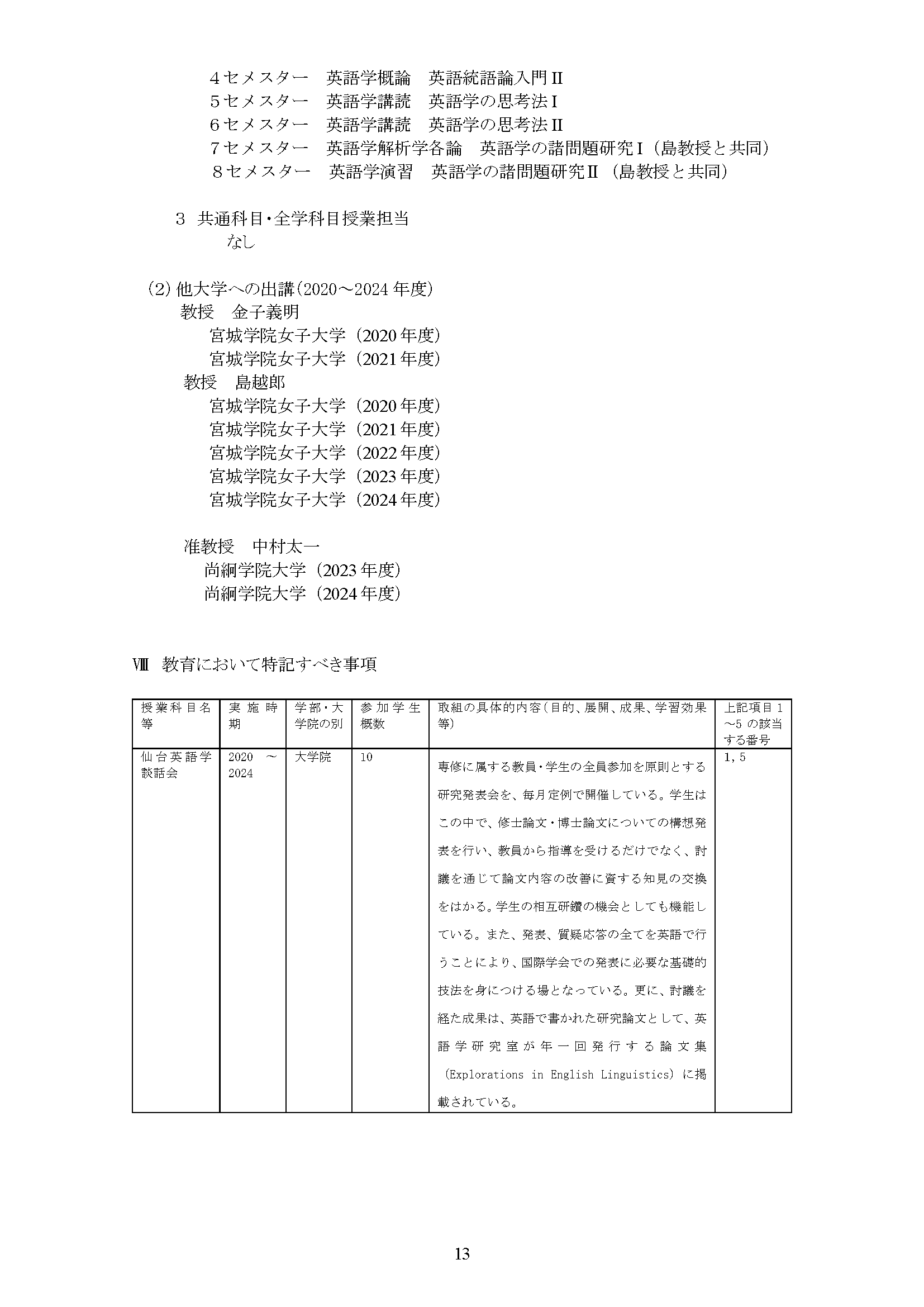 専修別教員一覧