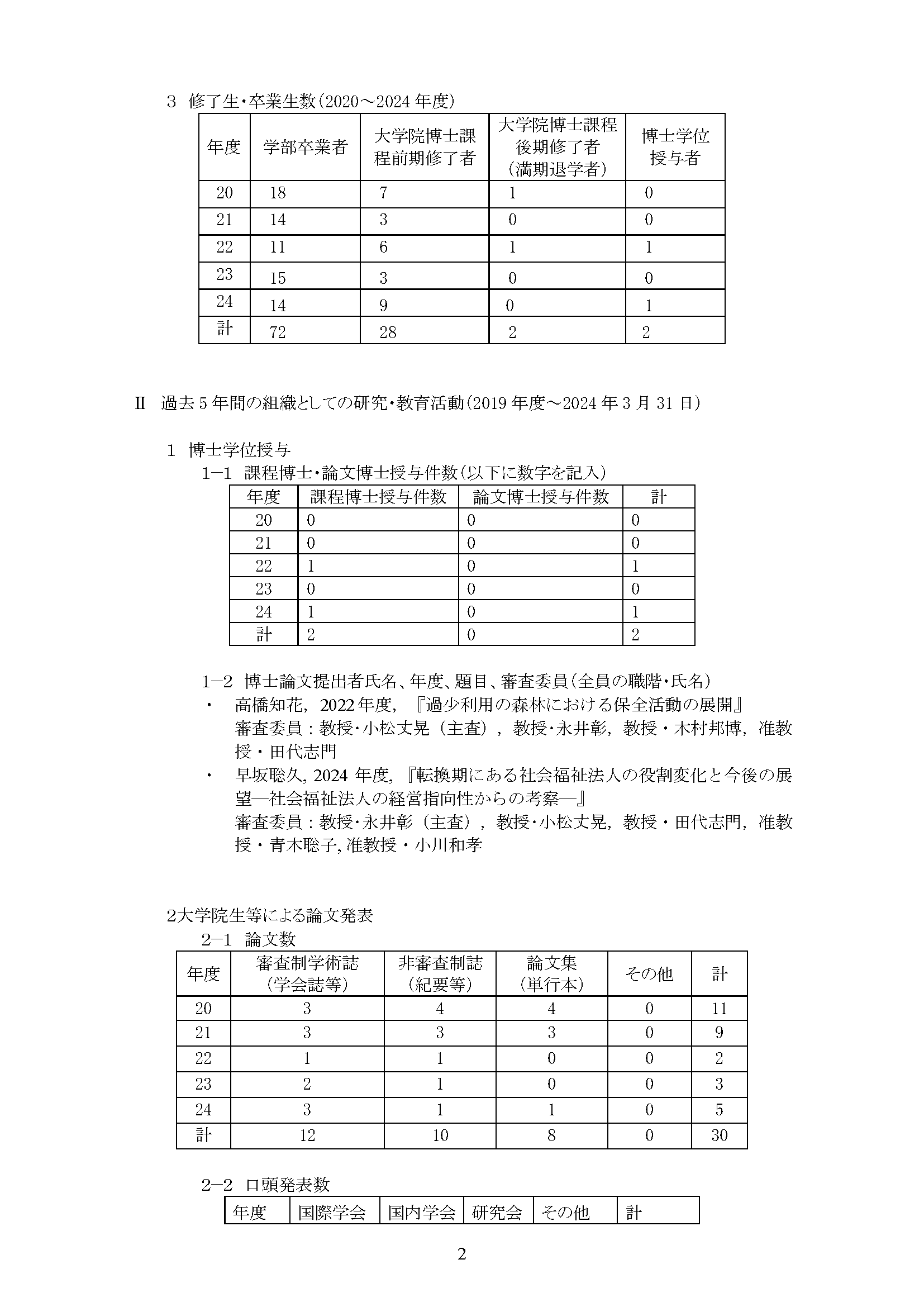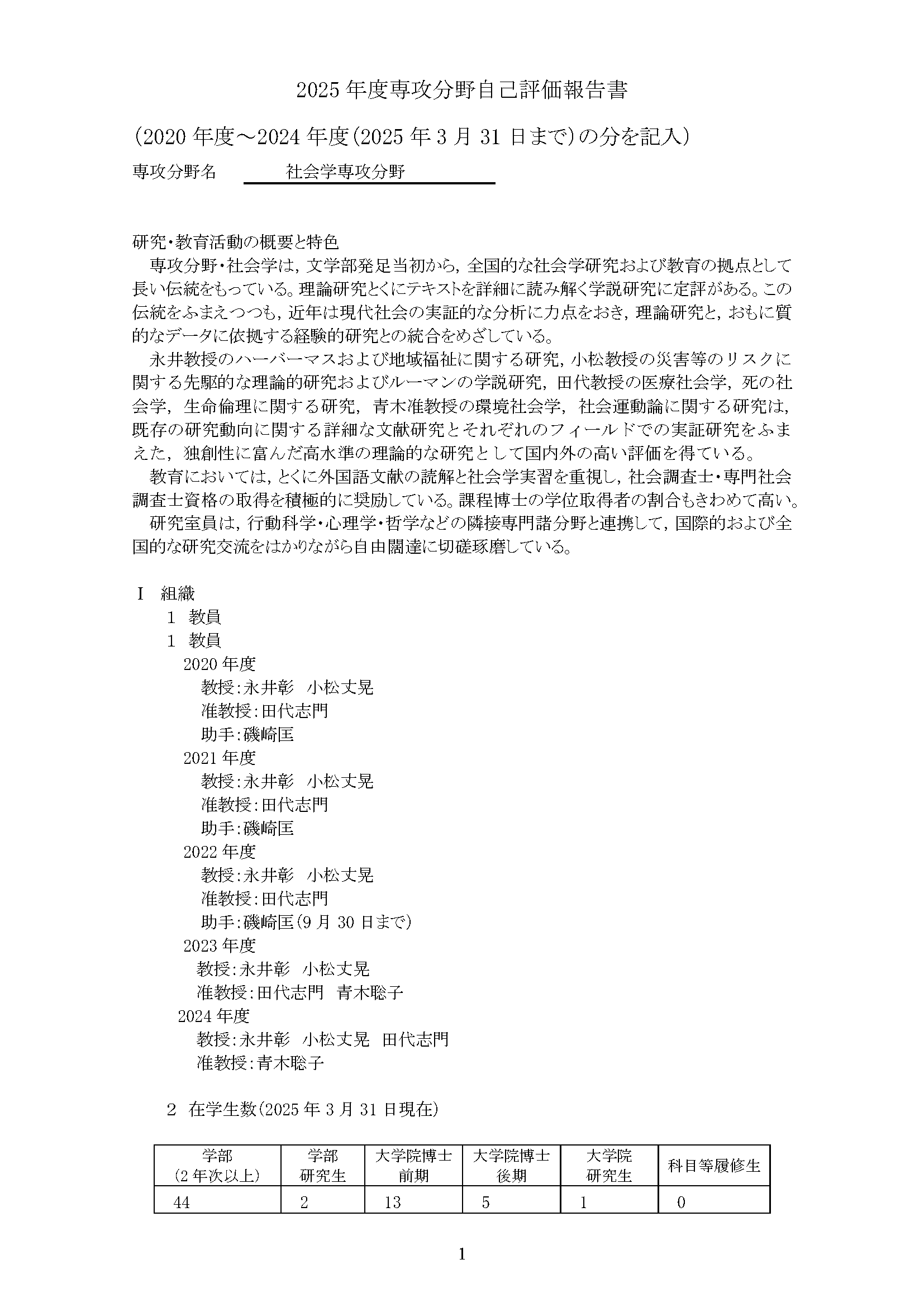専攻分野自己評価報告