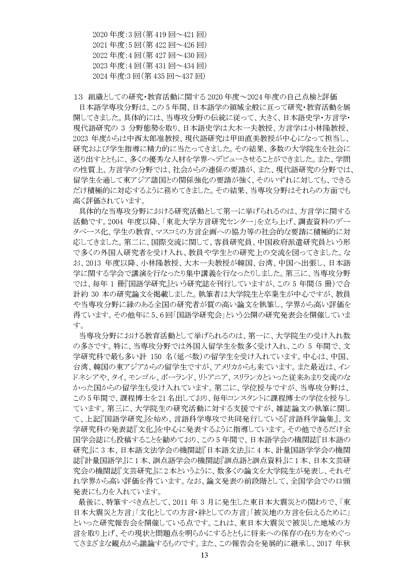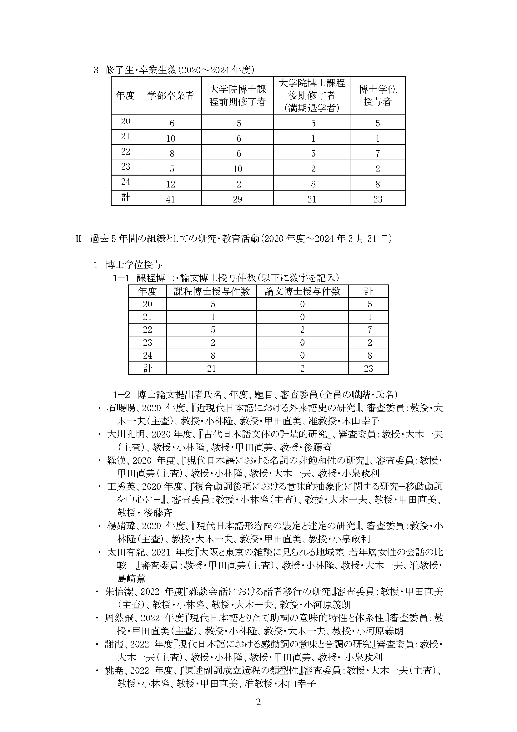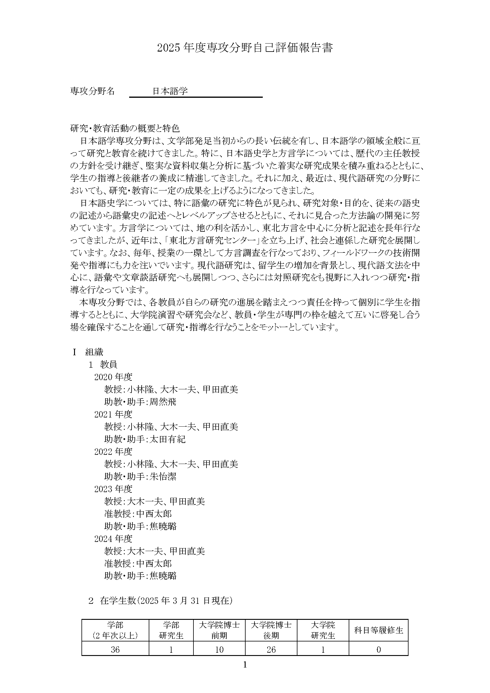 専攻分野自己評価報告