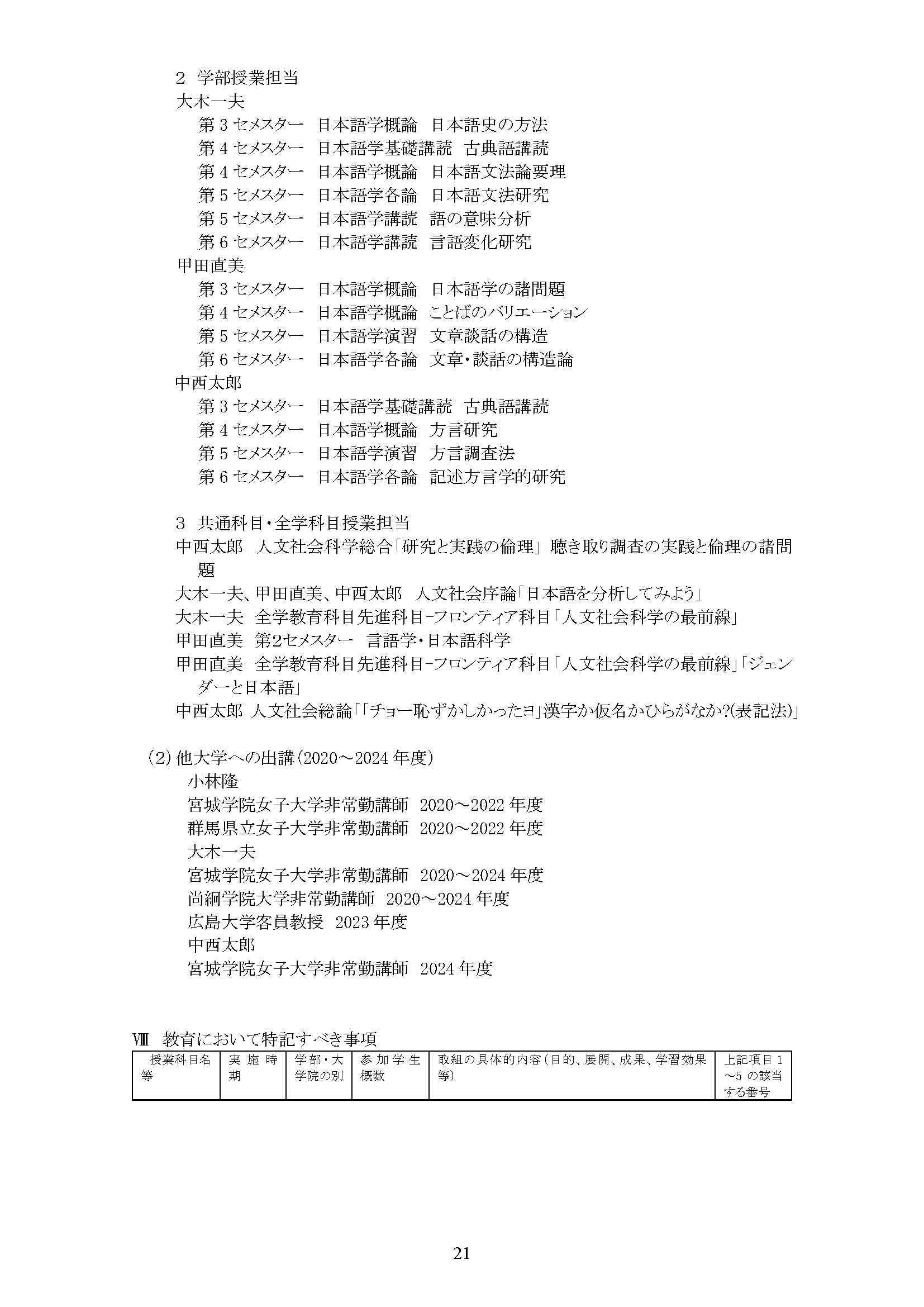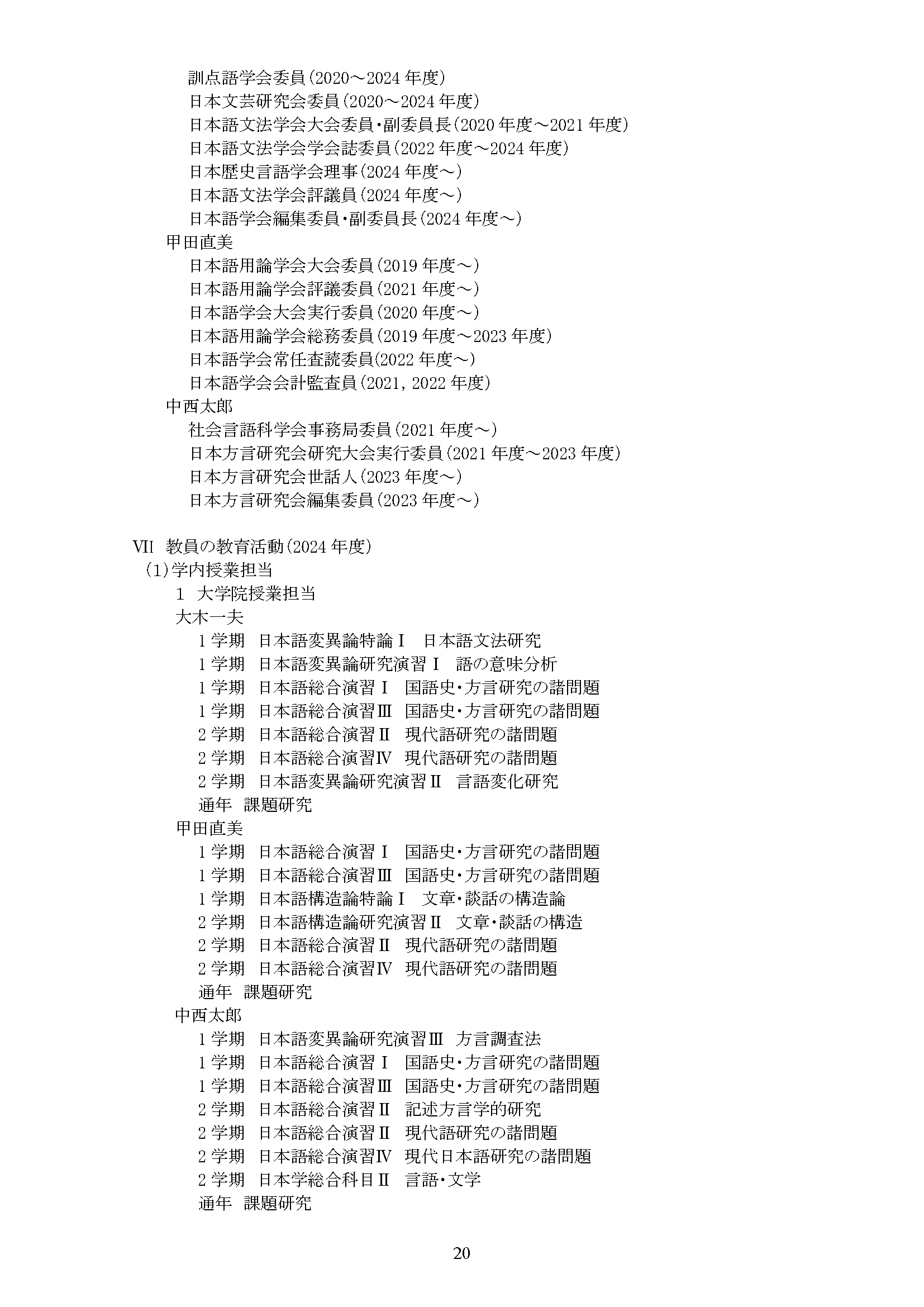 専修別教員一覧